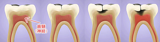 子どもの歯の特徴として歯髄(神経の部屋)が大きいために容易に虫歯の菌が到達し歯髄炎になってしまい、歯の神経を取る処置が必要となります。